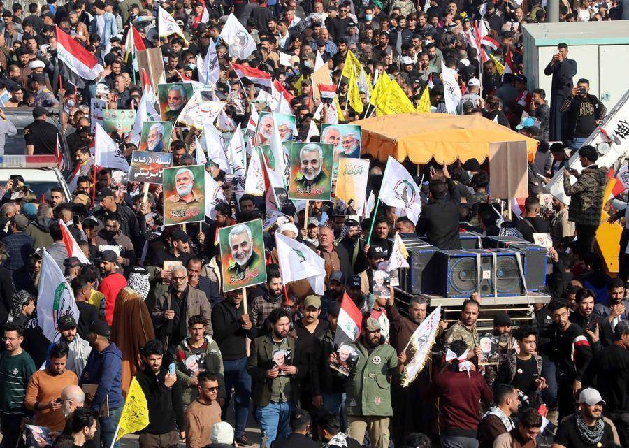 2021年1月3日,在伊拉克巴格达,东说念主们手举苏莱曼尼和穆汉迪斯形象的海报和伊拉克国旗插足苏莱曼尼和穆汉迪斯遇袭身一火一周年怀念四肢。新华社发尔后,国外社会和伊拉克各界条目好意思军除去的声息源源连接。驻伊好意思军基地比年来也往往遭到无东说念主机和火箭弹伏击。