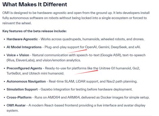 开源阵营已具备先发上风。近期,Open Mind推出了OM1Beta系统,当作众人首个“AI原生”开源平台,它不仅搭救UnitreeG1东说念主形机器东说念主、Go2、Turtle Bot和Ubtech等机器东说念主等平台,还搭救接入Open AI、Gemini品级三方大模子,以至提供前端交互界面简化操作。这类开源样貌以“免费+合作”模式快速霸占开发者心智,Meta若聘请闭源门路,将靠近生态推广速率的症结;若跟进开源,则需承担多量研发本钱却无直经受益。