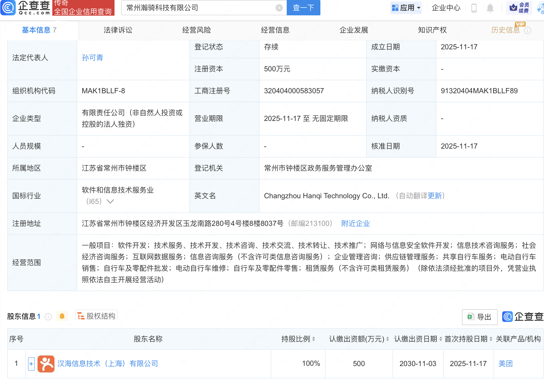 近日,常州瀚骑科技有限公司开拓开云kaiyun官方网站,贪图界限包含:收集与信息安全软件开拓;信息时候谈论业绩;社会经济谈论业绩;互联网数据业绩等。企查查股权穿袒走漏,该公司由好意思团探求公司汉海信息时候(上海)有限公司全资合手股。